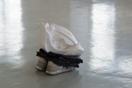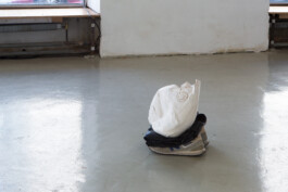 Acrylic resin, leather jacket, pants, underwear, sneakers